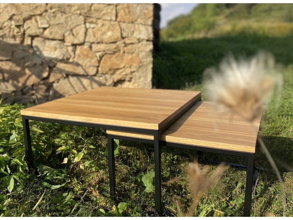 Sestava konferenčních stolků SQUARE z masivu dubu / buku / jasanu / lamina a oceli